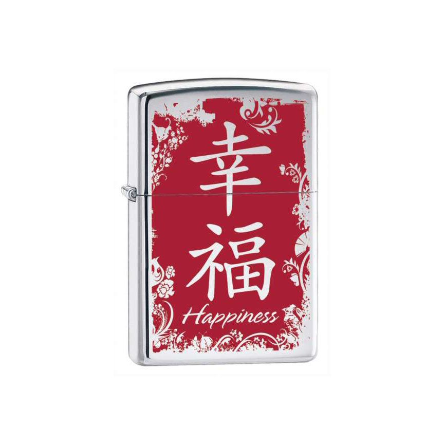 A text/statement theme Zippo Lighter with Chinese Happiness Polished Chrome finish and design. This model has the following design elements: Text and Statements, Standard Size case, Chrome in colour. This Zippo features a Bare Metal Polished Chrome finish