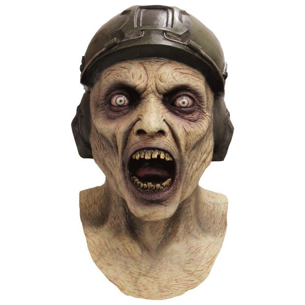 Mayday, mayday! This Zombie Aviator sent out a distress signal too late. Now he no longer craves open airspace, he hungers for human flesh. The undead airman mask features a vintage flight helmet, piercing blue eyes, and a wide open mouth with rotting teeth. Wear this mask for haunted houses and other spooky Halloween events.