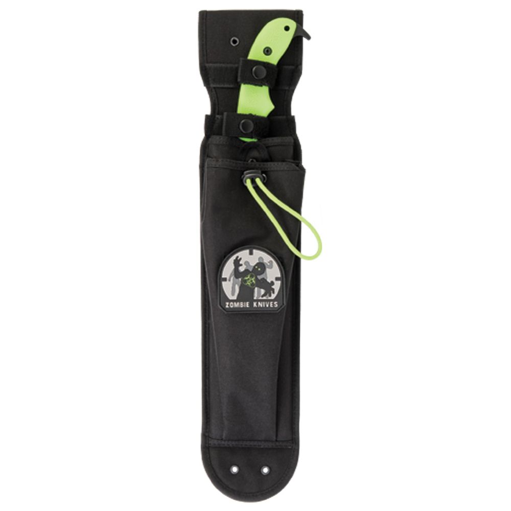 Knife comes mounted with toxic green handles. Extra set of black scales and Acheron Skeleton Knife (only) included. Zombie patch included, mounted on MOLLE compatible sheath.