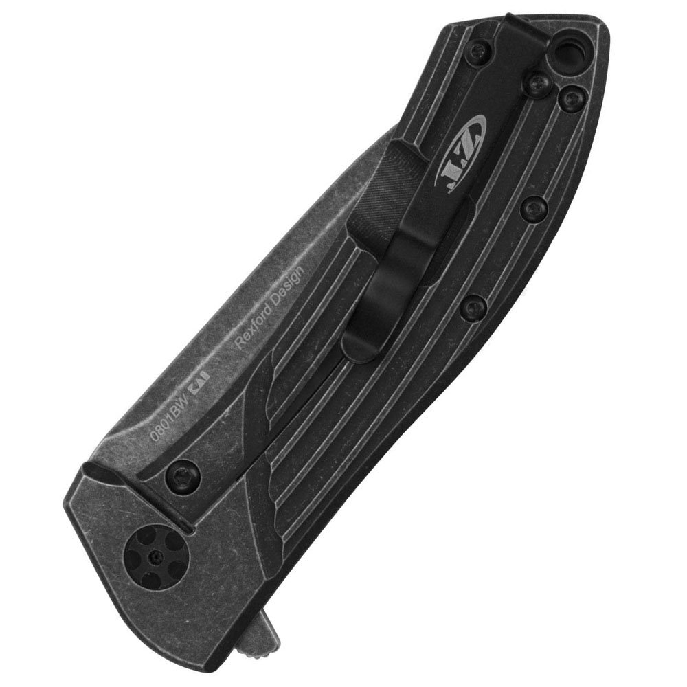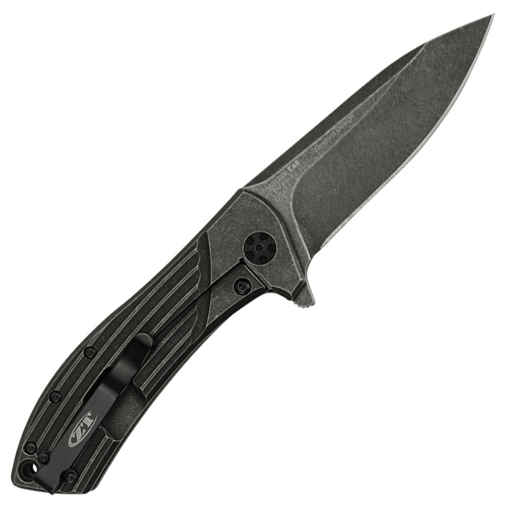 Custom knife designer Todd Rexford has been fascinated with knife construction since he was a young boy. His years of experience are evident in his edged tools, including the Zero Tolerance 0801. The folding knife features a solid titanium handle, razor-sharp ELMAX steel blade, and sturdy frame lock for secure opening. Pull down on the flipper tab to activate the smooth KVT ball-bearing opening technology. Available in silver stonewash and BlackWash finish.