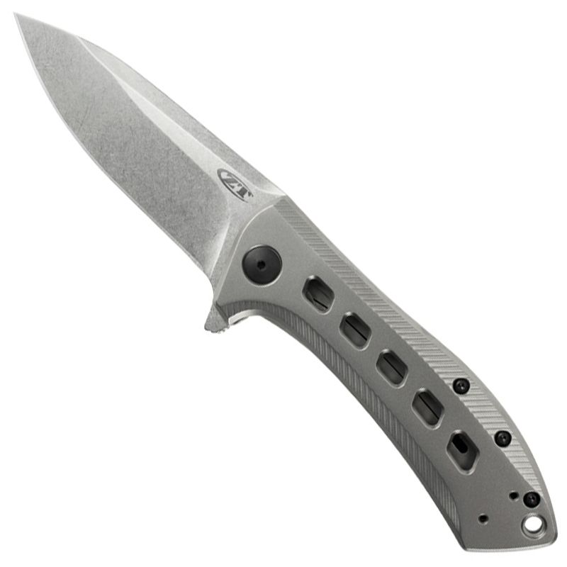The handle is titanium with a bead-blasted finish. The lock is a sturdy frame lock with hardened steel lockbar insert. The 0801TI opens manually with ZT’s KVT opening system and a flipper. The black Teflon-coated clip is left/right reversible for convenient pocket carry.